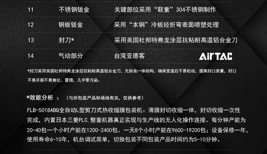 擁有多項專利技術(shù) 數(shù)千平標準廠房 批量標準化生產(chǎn) 可定制開發(fā)和自動化流水線搭建! 超前技術(shù)團隊 先進加工工藝 高精度加工設(shè)備 近20年專業(yè)研發(fā)經(jīng)驗不斷改進、創(chuàng)新、突破!我們定位于專注做中高端全自動熱收縮膜包裝機,請不要拿我們和不同定位的廠家對比!我們是源頭工廠…