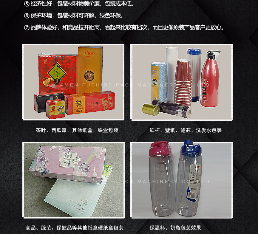 擁有多項專利技術(shù) 數(shù)千平標(biāo)準(zhǔn)廠房 批量標(biāo)準(zhǔn)化生產(chǎn) 可定制開發(fā)和自動化流水線搭建! 超前技術(shù)團隊 先進(jìn)加工工藝 高精度加工設(shè)備 近20年專業(yè)研發(fā)經(jīng)驗不斷改進(jìn)、創(chuàng)新、突破!我們定位于專注做中高端全自動熱收縮膜包裝機,請不要拿我們和不同定位的廠家對比!我們是源頭工廠…